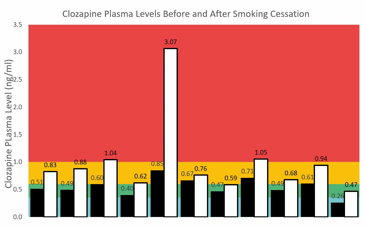 2. Stopping smoking causes plasma levels to rise but the magnitude of the effect is unpredictable